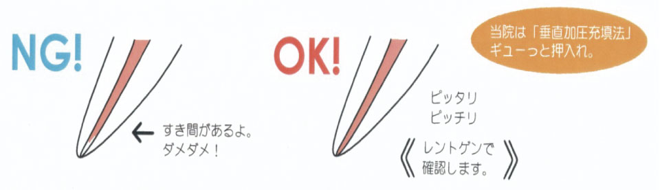 最後にガッタパーチャという材料で本物の封をします。