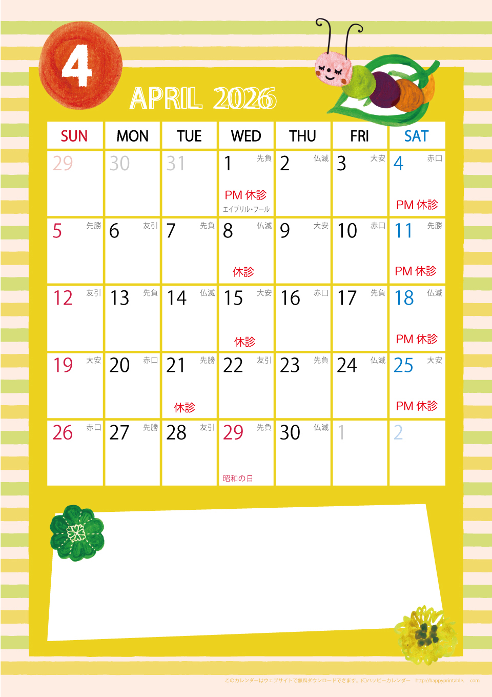ホーム > お知らせ:診療日のお知らせ > 2026年4月診療日のお知らせ